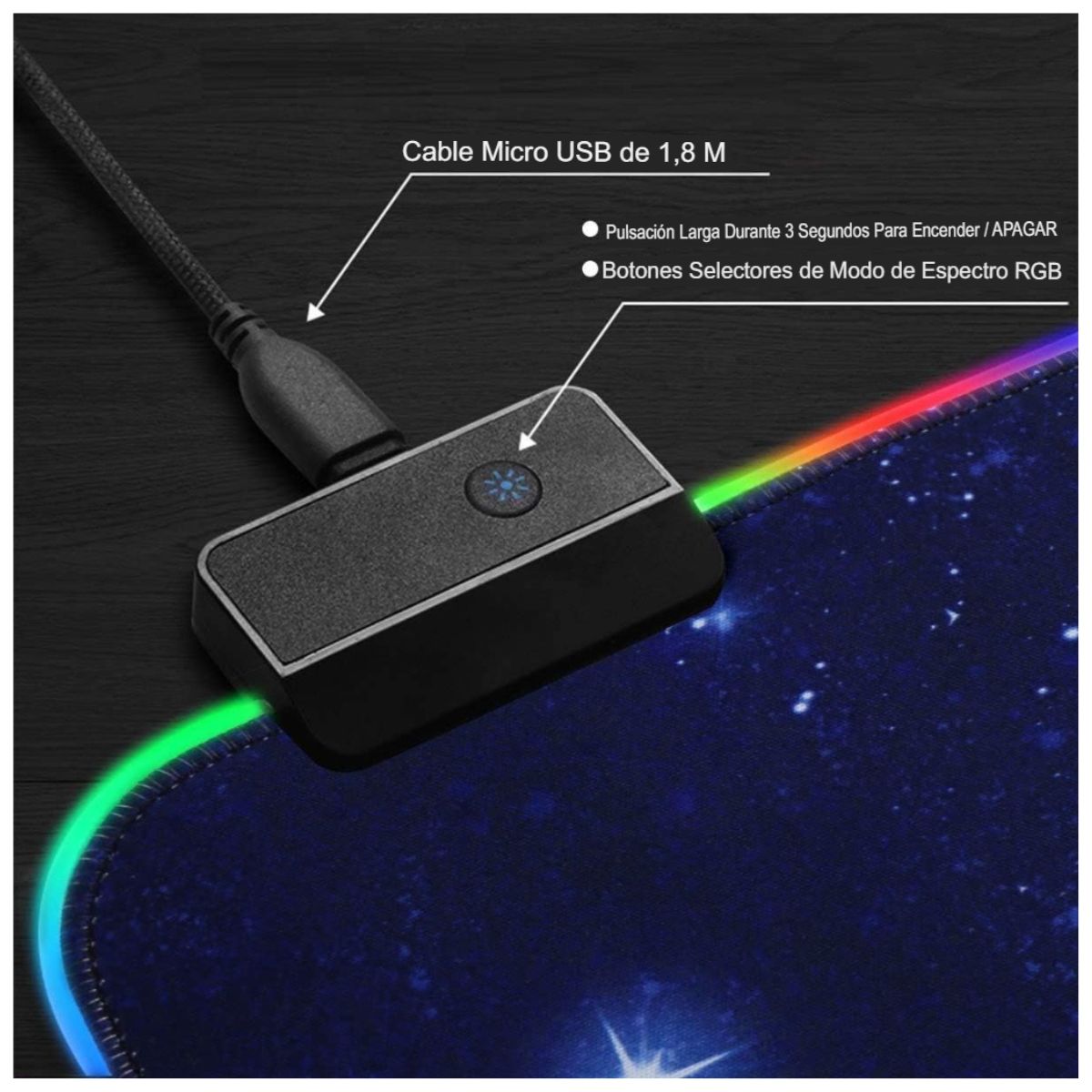 - Control Táctil de Modos: Incorpora un botón táctil en el módulo USB para cambiar fácilmente los colores y los modos de luz.