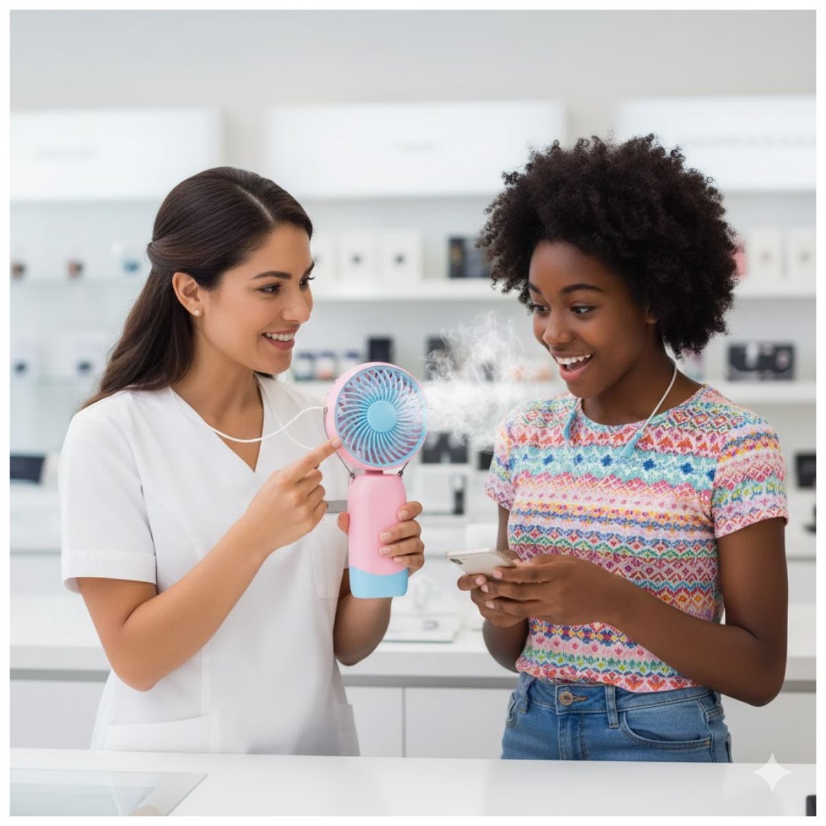 - Fácil de Sostener y Transportar: Con un diseño compacto y fácil de sostener, este mini ventilador eléctrico se adapta perfectamente a tus necesidades, ya sea en la oficina, en casa o en movimiento.